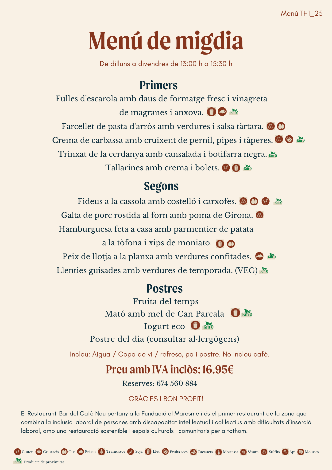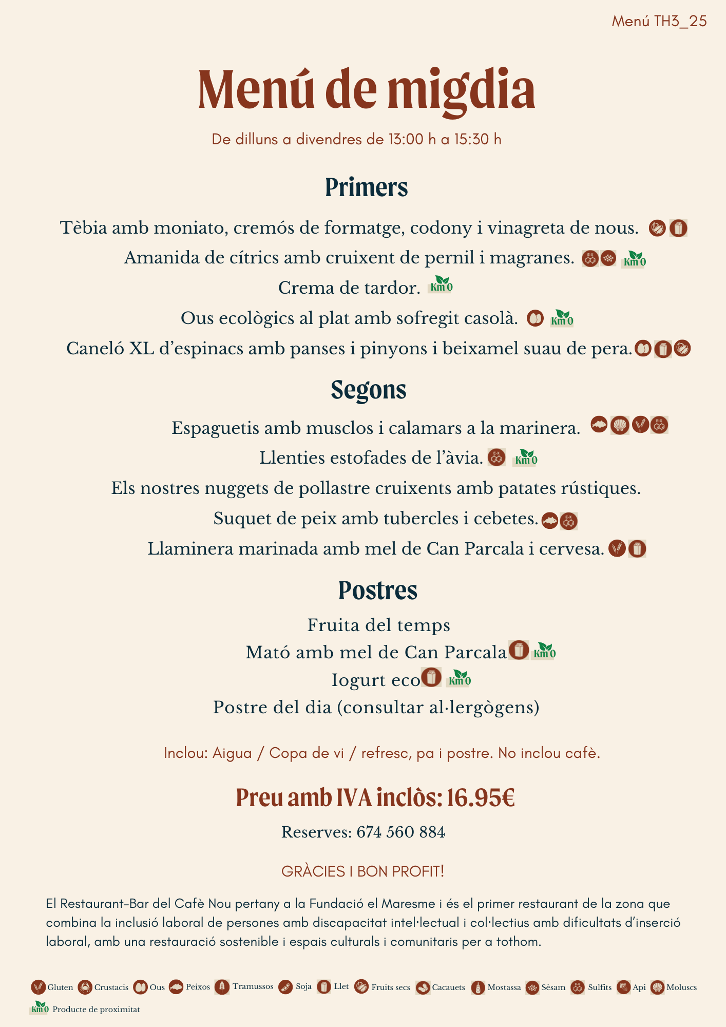 Situat a l’edifici del Cafè Nou a la Riera de Mataró, centre comercial i cultural de la ciutat, compta amb un menjador amb sala polivalent que permet realitzar activitats culturals i àpats per a grups. El restaurant Bar del Cafè Nou disposa d’una terrassa privilegiada a l’aire lliure que permet gaudir d’un entorn únic amb vistes al Pati del Cafè Nou i a l’edifici de la Presó.